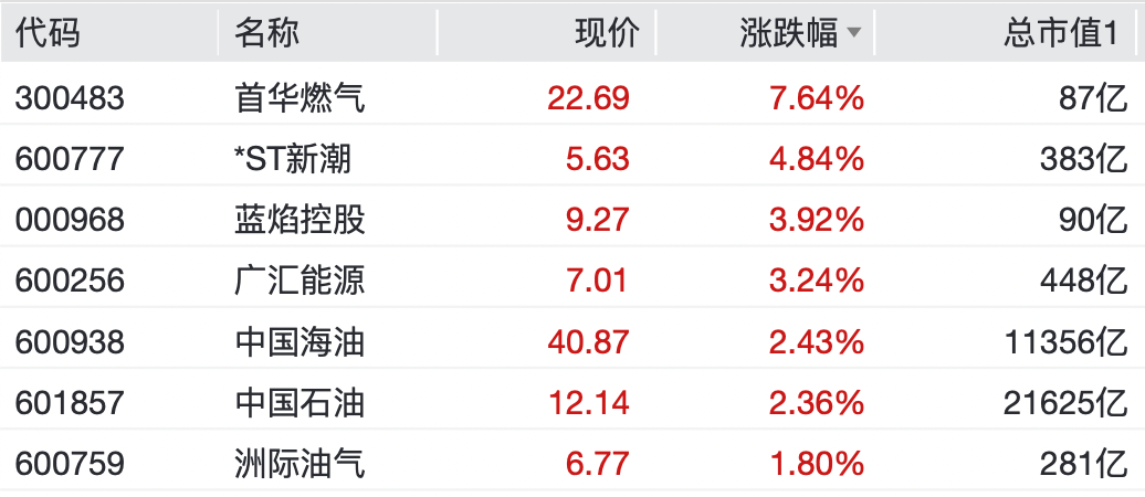 首华燃气涨逾7%,蓝焰控股、广汇动力、洲际油气等纷纷高涨。